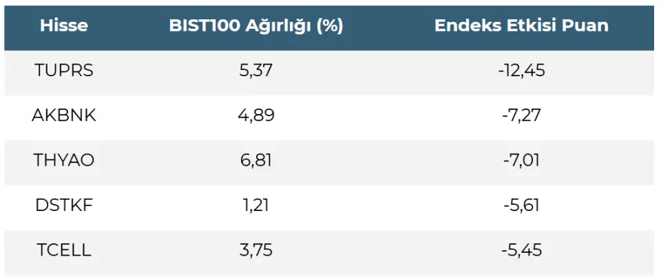 Haftanın ilk işlem gününde BIST100 endeksi güne -%1,25 düşüşle 10.586,02 seviyesinden başladı. Günün ilk yarısında endekste negatif seyir izleniyor. Baskının artması halinde 10.550 seviyesi destek olarak takip edilebilir. Satışların derinleşmesi durumundaysa 10.250 seviyesine doğru fiyat hareketleri gündemi meşgul edebilir. Toparlanma gerçekleşmesi halinde 55 günlük ortalama (10.820) kritik direnç bölgesi olarak karşımıza çıkmaktadır. Endeks etkisi açısından bakıldığında TUPRS ve AKBNK’nin negatif fiyatlamayla endekste baskı oluşturan tarafta yer aldığı görülmektedir.