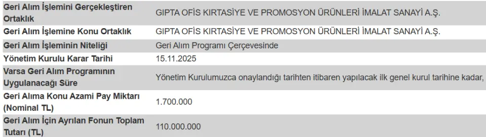 Hisse senedi piyasasında son dönemde yaşanan dalgalanmalara bağlı olarak, Şirketimizin Borsa İstanbul'da işlem gören paylarının fiyatının Şirketimizin yatırım ve faaliyetlerinin gerçek performansını yansıtmaması sebebiyle pay sahiplerini korumak ve Şirketimiz pay fiyatının gerçek değerine uygun oluşumunu desteklemek amacıyla;