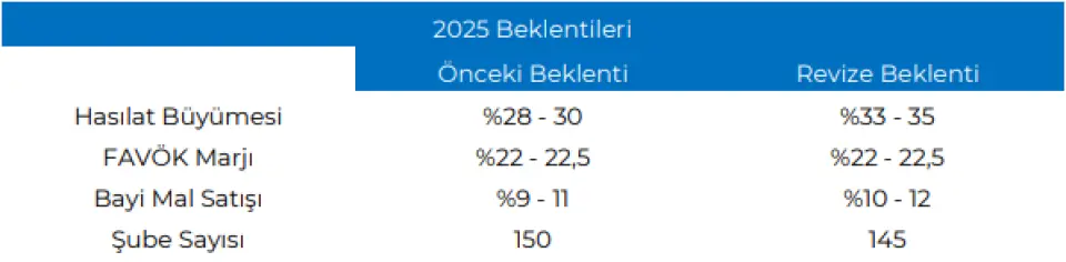 Şirketin 2025 yılı beklentileri aşağıdaki gibi açıklandı.