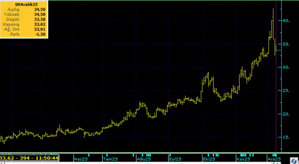 BLCYT 17 Ekim günü 22,50 TL fiyattan ralliye başladı. Hisse son zamanlarında hızlanan trendini 42,58 TL zirve fiyata kadar taşıdı. Dün hissede işlem yasağı başladı.