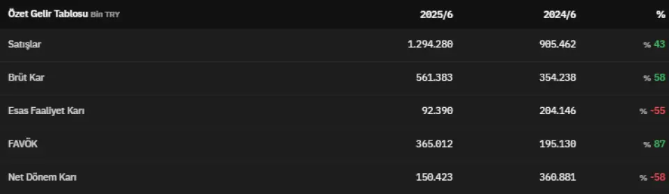 2025 yılının ikinci çeyreğinde net borç 5.047.416.000 TL olarak açıklandı. Özkaynaklar ise 2025 yılının ikinci çeyreğinde 5.813.551.000 TL olarak duyuruldu. 2025 yılının ilk çeyreğinde 5.401.943.000 TL olarak açıklanan özkaynaklar, 2025 yılının ikinci çeyreğinde %8 artmış oldu.