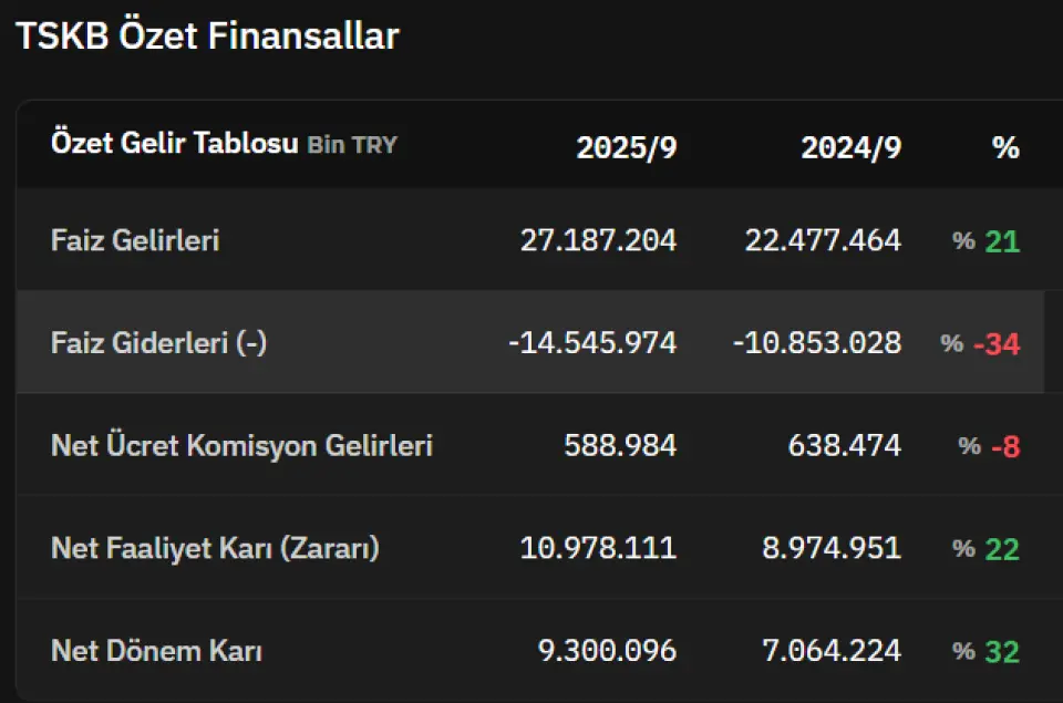 Türkiye Sınai Kalkınma Bankası (TSKB) 2025 3. Çeyrek Bilanço Analizi