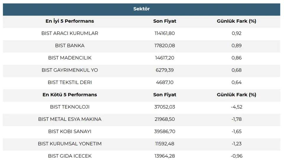 Sektör görünümlerinde ilk yarıda genel olarak negatif seyrin hakim olduğu görülmektedir. En iyi performans sergileyen sektör(ler) Aracı Kurumlar, Banka ve Madencilik iken baskı görenlerde Teknoloji, Metal Eşya Makina ve Kobi Sanayi dikkat çekmektedir.