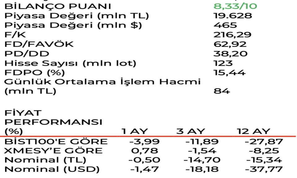 - "FAVÖK, brüt kardan gelen destekle birlikte 3.çeyrekte %59,78 artışla 97 milyon TL oldu. FAVÖK marjı tarafında ise 204 baz puan artışla %12,3 oldu. %12’nin bir miktar üzerinde bir FAVÖK marjı ile yılı tamamlamasını bekleyebiliriz."