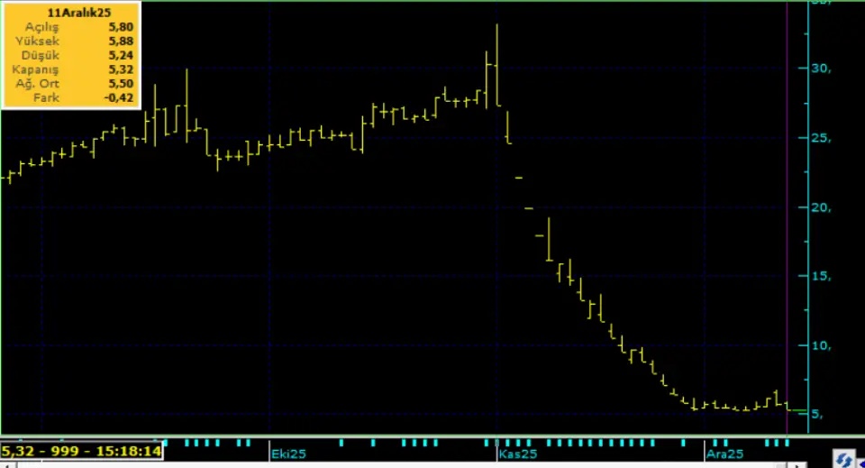 BORLS şimdi de işlem yasağıyla gündemde. Hissede kredili işlemler ve açığa satış 1 ay süreyle yasaklandı. Hisse, Kasım ayı başında 33 TL fiyatlardan taban taban geri gelmiş ve 20 işlem gününde 5 TL fiyata kadar düşmüştü. O düşüş trendinde hissede her hangi bir tedbir uygulaması başlatılmamıştı.