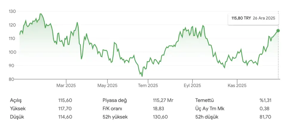 Astor hissesi Borsa İstanbul yatırımcısının yakından takip ettiği hisseler arasında yer alıyor. 2023 yılının Ocak ayında 12,50 TL'den halka arz olduktan sonra 8 Eylül 2023 tarihinde 143,90 TL seviyelerine kadar çıkan hissede son 1 senede ise deyim yerindeyse yaprak kıpırdamadı. Son 1 yılda ASTOR hissesi, yatırımcısına sadece yaklaşık %3 kazandırabildi. ASTOR, 26 Aralık 2024 tarihinde 112,50 TL'den işlem görüyordu. Yılbaşından bu yana ise %2,93 değer kaybeden hisse, son 6 ayda ise hareketlendi ve %32,53 değerlendi. Son 1 ayda da yatırımcısına %24,76 kazandıran ASTOR, son 5 günde de %3,50'ye yakın değer kazandı. Hisse 26 Aralık 2025 tarihli yeni işlem gününe de 115,80 TL'den başlangıç yaptı.Para ajansından yeni uygulama, yatırımcıların mağdur olduğu konular hakkında Finyad Finansal Yatırımcılar Derneği tarafından hukuki işlemlerin başlatılabilmesi ve ajansımızın konu hakkında haber yapabilmesi için whatsapp ihbar hattı kurulmuştur. Aşağıdaki linki tıklayarak telefonumuzu kaydedin. Hem son dakika ve önemli haberler cebinize gelsin. Hem de bizimle iletişime geçebilirsiniz . Para ajansı her zaman yanınızda