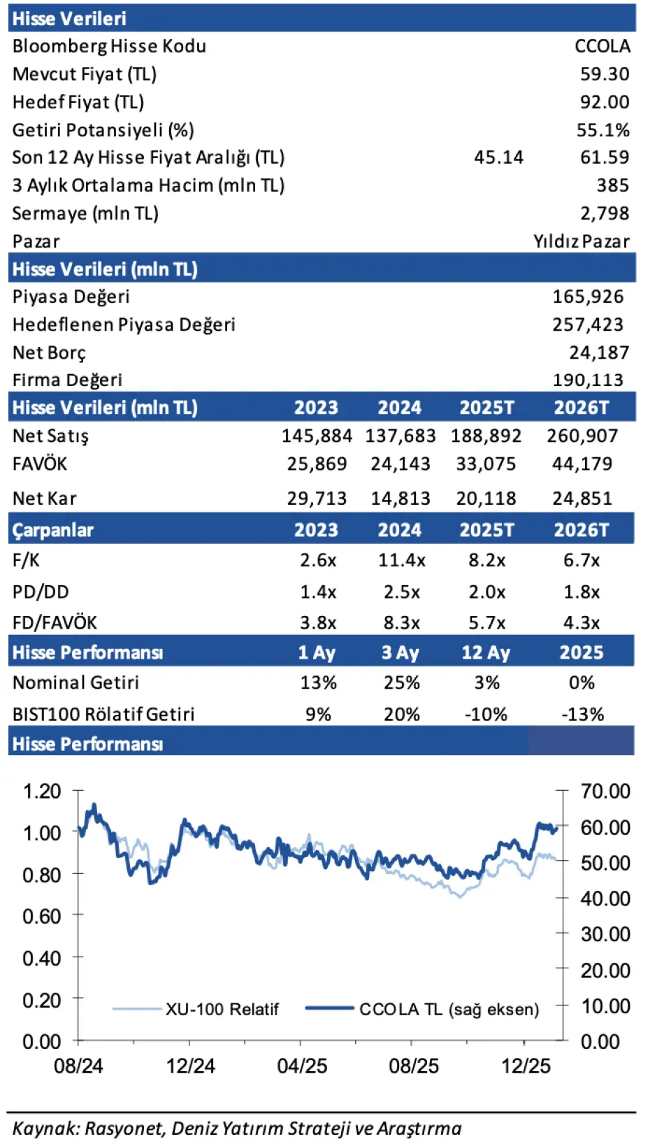 Deniz Yatırım CCOLA Hedef Fiyat 2026