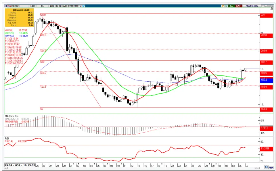 nedeniyle PETKM hissesinde 19,24TL ve ardından 19,47TL seviyelerine doğru yükseliş beklenebilir.