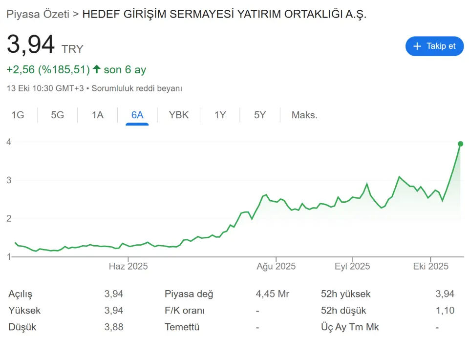 10 Ekim 2025 tarihinde gelen KAP açıklamasına göre şirket paylarına tedbir uygulaması getirildi. Tedbir kapsamı brüt takas olarak belirlenirken geçerlilik süresi 1 ay olarak açıklandı. Tedbir 13 Ekim tarihli işlemlerden (seans başından) 12/11/2025 tarihli işlemlere (seans sonuna) kadar geçerli olacak.Hisse grafiği ne yönde ilerledi?