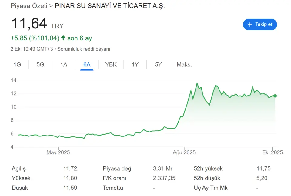 Şirket payları son altı ayda hareketli ilerlemiş görünüyor. Hisse değeri 6 aylık süreçte %100 oranında yükselmiş. Son bir aylık grafiğe bakıldığında ise hissenin değeri %2 yükselmiş olarak görünüyor.