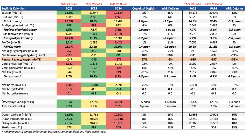 - "Zorlu ekonomik koşullarda büyüme destekli ve müşteri tabanını koruma stratejisi sürdürüldü. Bu dönemde gerçekleşen marj kaybının ise yönetilebilir seviyede kaldığını ve Şirket’i yakından takip edenler açısından sürpriz olmadığını düşünüyoruz."
