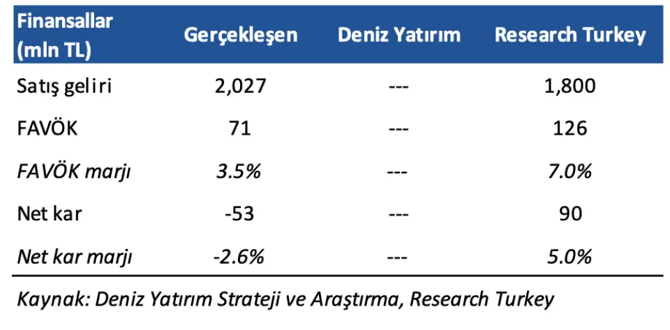 - "2025 yılı 3. çeyrekte 2.027 milyon TL gelir, 71 milyon TL FAVÖK ve 53 milyon TL net zarar açıkladı. Enflasyon muhasebesi sebebi ile parasal kazanç/kayıp kalemi altında 26 milyon TL’lik olumlu etki oluştu."