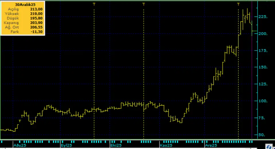 Hatta bu arad, şirker pay geri alım programı çerçevesinde borsadan geri aldığı payları karlı bir şekilde sattı. Şirket yaklaşık 3,5 milyon lot hisseyi 158 -177,70 TL fiyata arlığından sattı. Şirketin paylarını da iştahla alan tahta yükselmeye devam etti ve 237 TL zirve fiyat da görüldü.