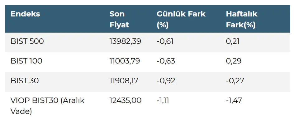 Haftanın son işlem gününde BIST100 endeksi güne %0,09 artışla 11.082,74 seviyesinden başladı. Günün ilk yarısında endekste negatif seyir izleniyor. Negatif hareketin devamında 55 günlük ortalama (10.785) seviyesi güçlü destek olarak izlenebilir. Tam tersi yukarı yönlü hareketlerde 11.025 seviyesinde verilecek reaksiyon önem arz etmektedir Endeks etkisi açısından bakıldığında AKBNK ve TCELL’in negatif fiyatlamayla endekste baskı oluşturan tarafta yer aldığı görülmektedir.