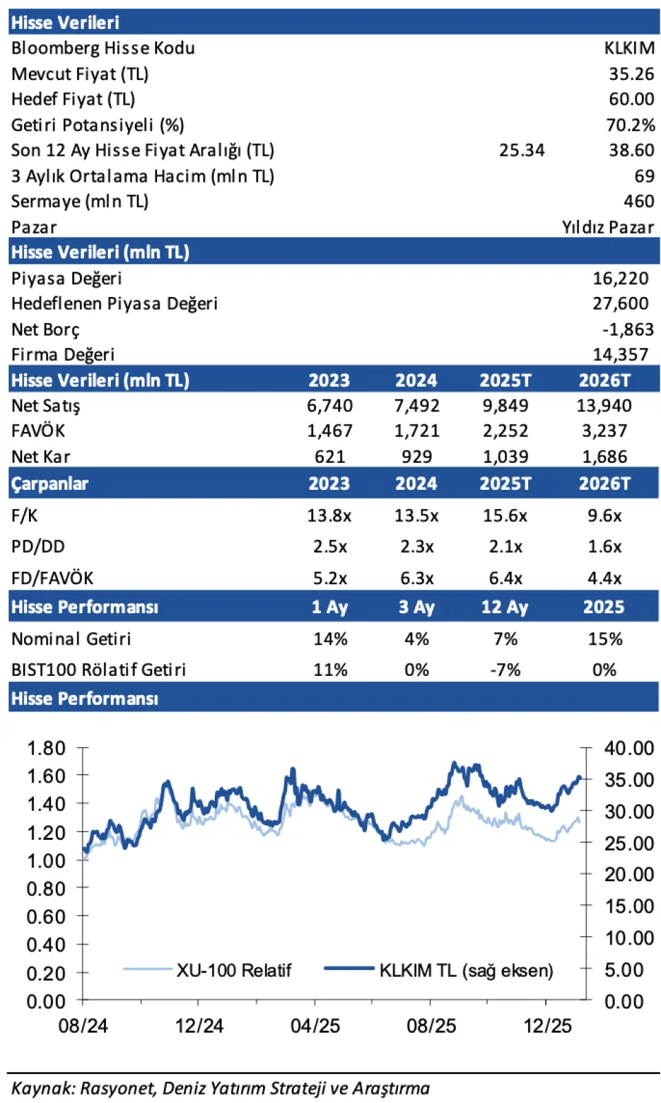 Deniz Yatırım KLKIM Hissesi Hedef Fiyat