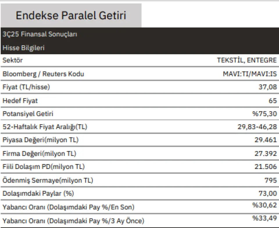 Gedik Yatırım MAVİ GİYİM 11.12.2025 3Ç25 Finansal Sonuçları