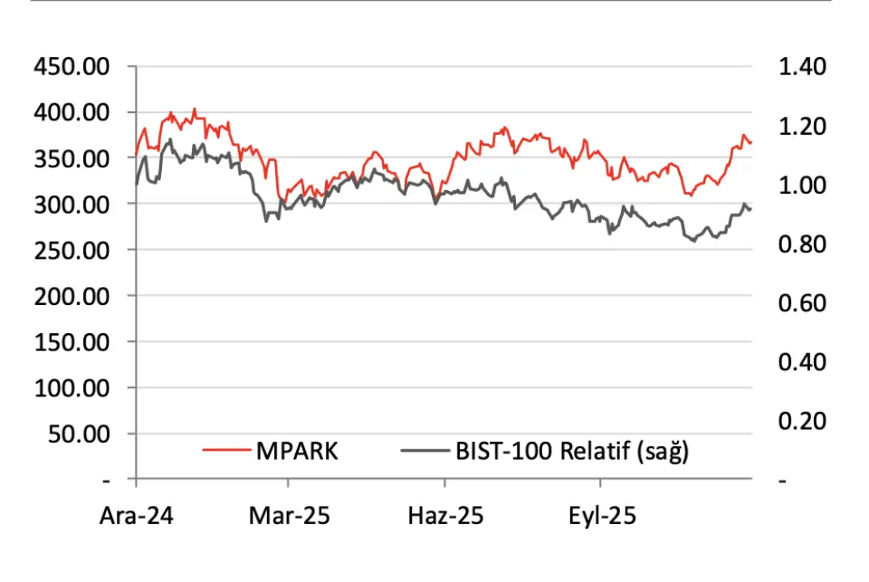 Ak Yatırım, MPARK hissesi için hedef fiyatını 535 TL’den 655 TL’ye yükseltti. MPARK hisse tavsiyesi “Endeks Üzerinde Getiri” şeklinde açıklandı.MPARK getiri potansiyeli %79 olarak açıklandı.- "Cazip değerleme. MLP, 2026T 3,7x FD/FAVÖK ve 8,1x F/K seviyelerinde işlem görmekte olup, bu seviyeler benzerlerine kıyasla sırasıyla %69 ve %56 iskontoya işaret etmektedir."