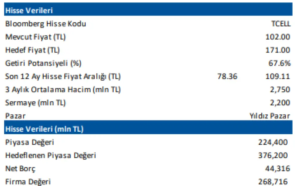 91 TL ye Düşen TCELL Hissesine 171 TL Hedef Fiyat Var