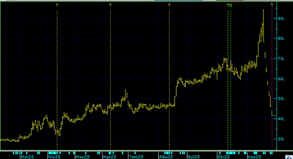 Ancak bu hızlı çıkış aynen başladığı gibi hızlıca geri geldi. Hisse 7 gün taban taban geri gelerek destek bulduğu 60 TL fiyatın da altına düştü ve 41,70 TL fiyata kadar düştü.