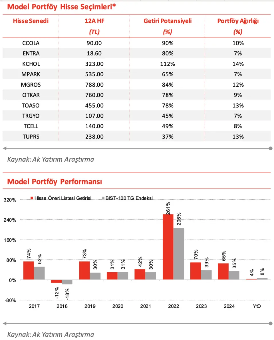 Borsa İstanbul'un aracı kurumu Ak Yatırım, model portföy güncellemesini yatırımcılar ile paylaştı. Model portföy değişikliğinin sebepleri de açıklandı. Ak Yatırım, CCOLA hissesini model portföyüne dahil ettiğini duyurdu.
