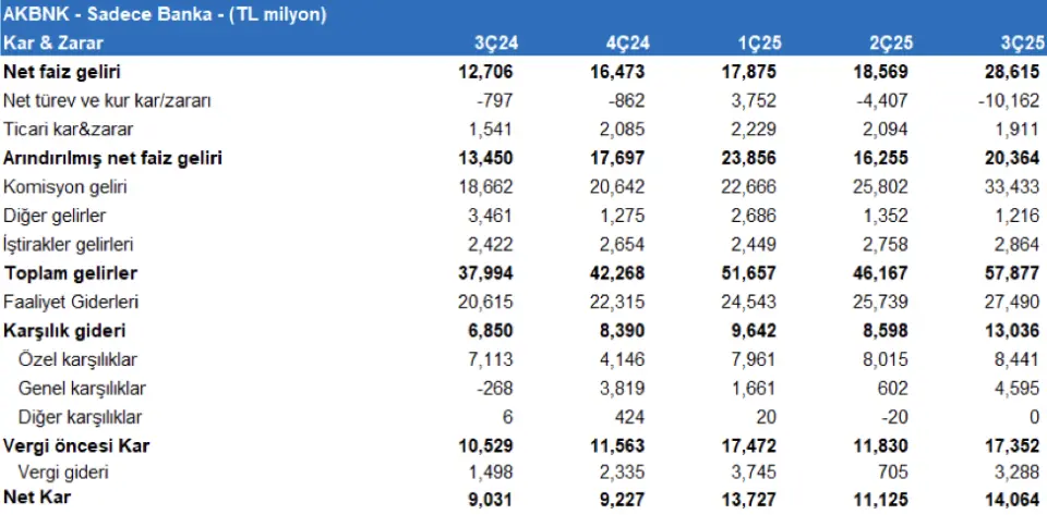 Akbank’ın Net Karı 3Ç25’te 14.1 Milyar TL Seviyesinde Gerçekleşti!