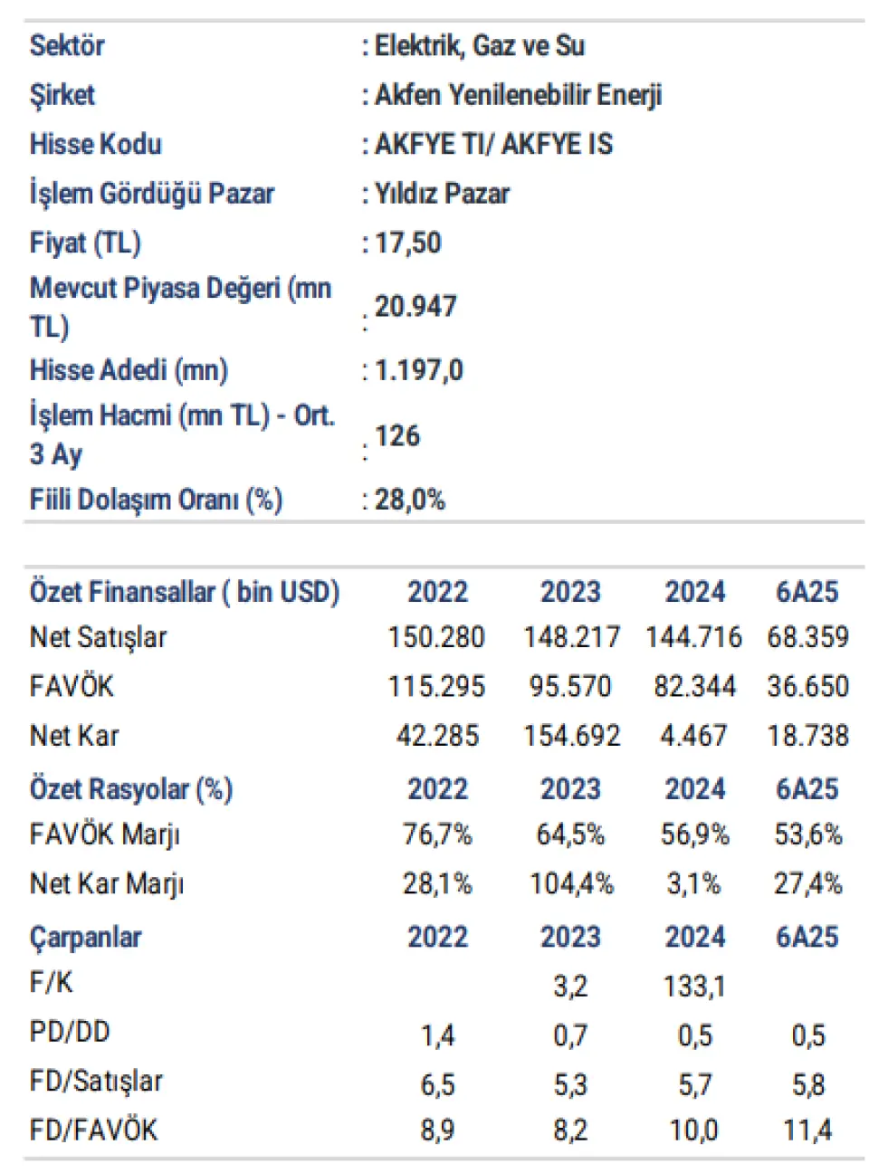 Vakıf Yatırım, Akfen Yenilenebilir Enerji şirket raporunu yayınladı. Aracı kurumun analizleri aşağıdaki gibi oldu: