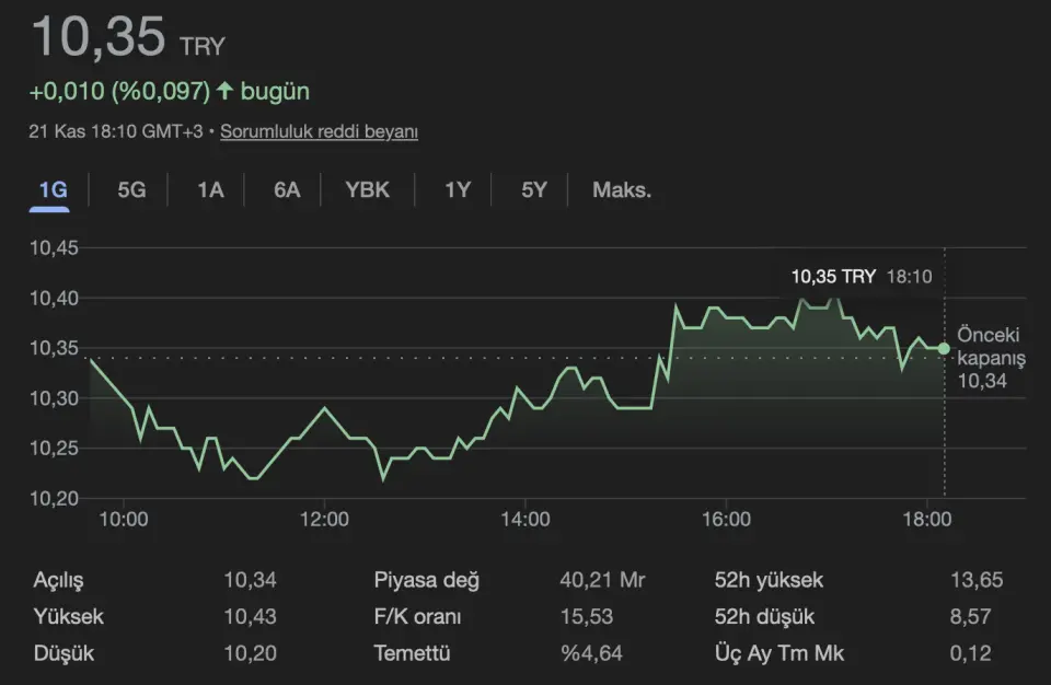Ayrıca,Şirket’in son 3 yıllık USD bazında piyasa değeri gelişimine de baktığımızda, son kapanışa göre 950 milyon USD ile son 3 yıllık ortalamasının %15 altında ve son 3 yılın en düşük seviyesinin sadece %12 uzağında bulunuyor. Son 3 yılın en yüksek seviyesinin ise %41 altında yer alıyor.