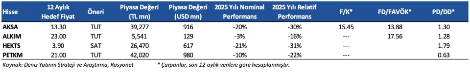 - "Petkim’in 2025’teki zayıf performansının mevcut piyasa koşullarında devam edeceğini tahmin etmekle birlikte, borç azaltma odaklı hamlelerini sürdürmesini bekliyoruz."