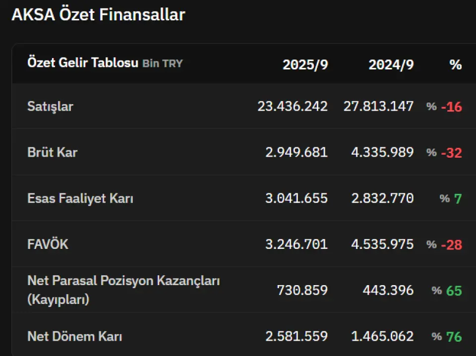 Aksa Akrilik, 2025 3.çeyrekte 8,1 milyar TL hasılat, 976 milyon TL FAVÖK ve 1,19 milyar TL net zarar ile beklentilerimiz dahilinde sonuçlar paylaştı.