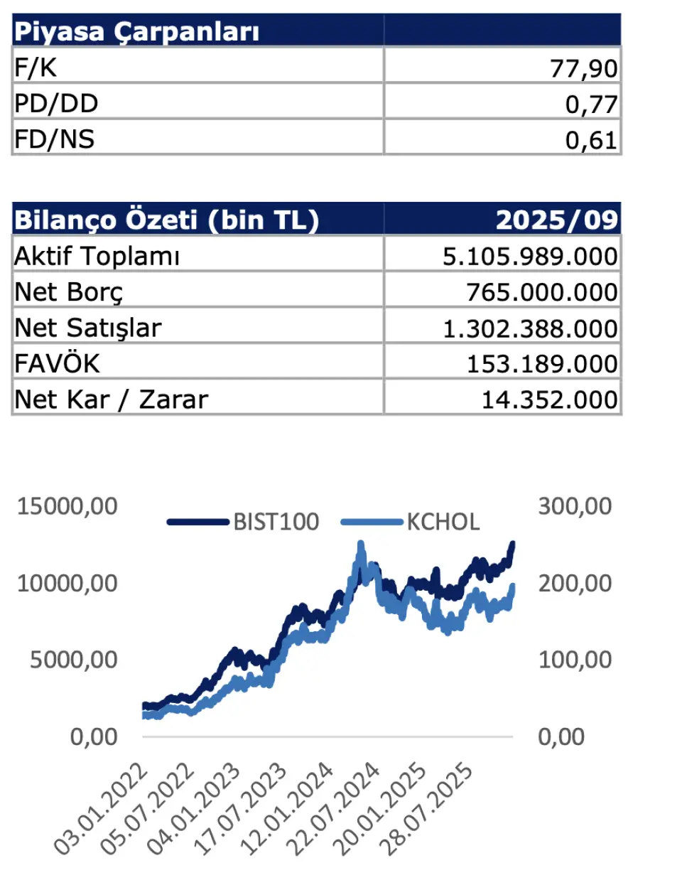 Koç Holding'in 3Ç25’te 7,65 milyar TL ana ortaklık net karı elde ettiğine dikkat çeken Anadolu Yatırım, holdingin 3Ç24’te ise 4,4 mlr TL ana ortaklık net zararı elde ettiğini hatırlattı. Holdingin, Brüt Kâr Marjı ve FAVÖK marjındaki toparlanmanın geçtiğimiz dönemde de devam ettiğine dikkat çekildi. Bu durumun finansallar açısından olumlu bir görünüm çiztiği de ifade edildi.