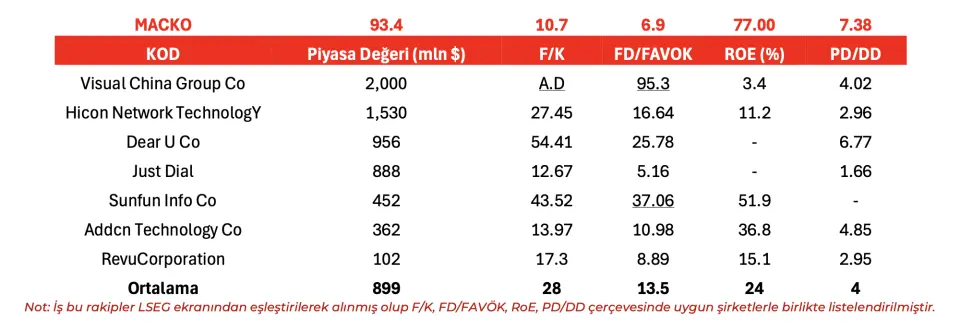 Aracı kurumlardan Marbaş 1 yılda %91,50 yükselen Menkul Değerler, Maçkolik (MACKO) hiissesine yönelik değerlendirme yaptı. Aracı kurum, Maçkolik için "Yoğun spor takvimi eşliğinde sürdürülebilir karlılık, artan internet kullanımı ve kullanıcıların bağlılığı" ifadesini kullandı. Marbaş Menkul, MACKO hissesi için 12 aylık hedef fiyatla beraber hisse tavsiyesini duyurdu.
