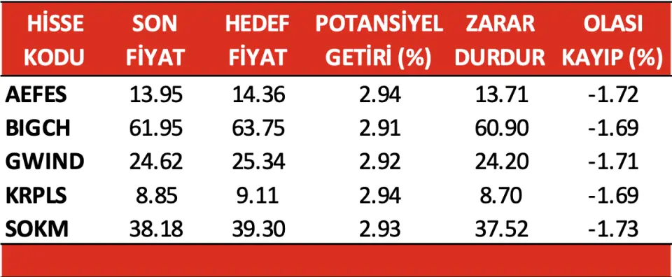 Alnus Yatırım AEFES, BIGCH, GWIND, KRPLS ve SOKM'u Öneriyor