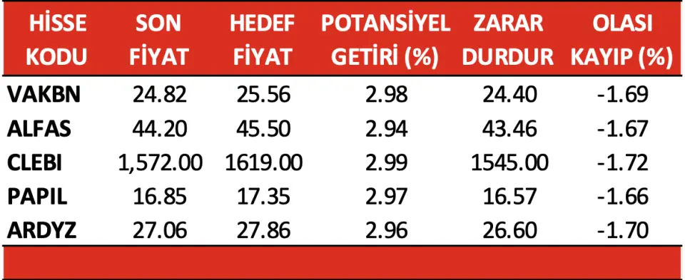 Alnus Yatırım bugün VAKBN, ALFAS, CLEBI, PAPIL ve ARDYZ'e hedef fiyat verdi!
