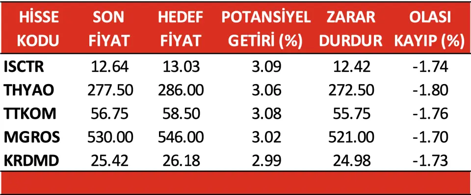 Alnus Yatırım ISCTR, THYAO, TTKOM, MGROS ve KRDMD'yi Öneriyor!