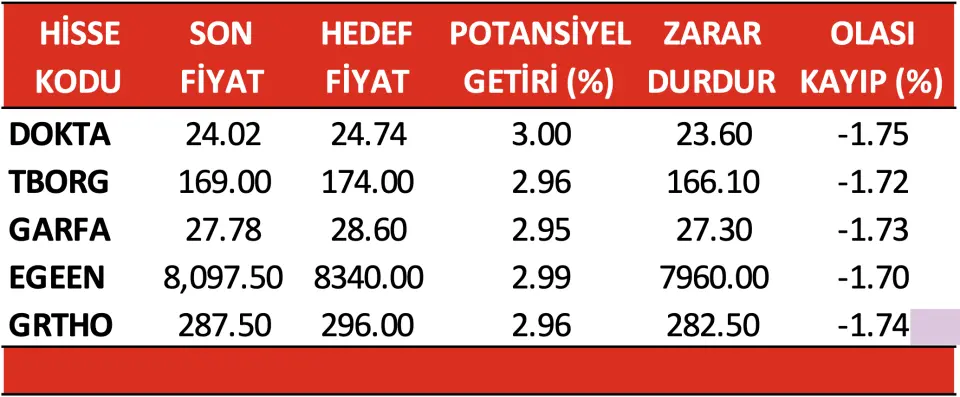 Alnus'un Hisse Önerileri: DOKTA, TBORG, GARFA, EGEEN ve GRTHO!