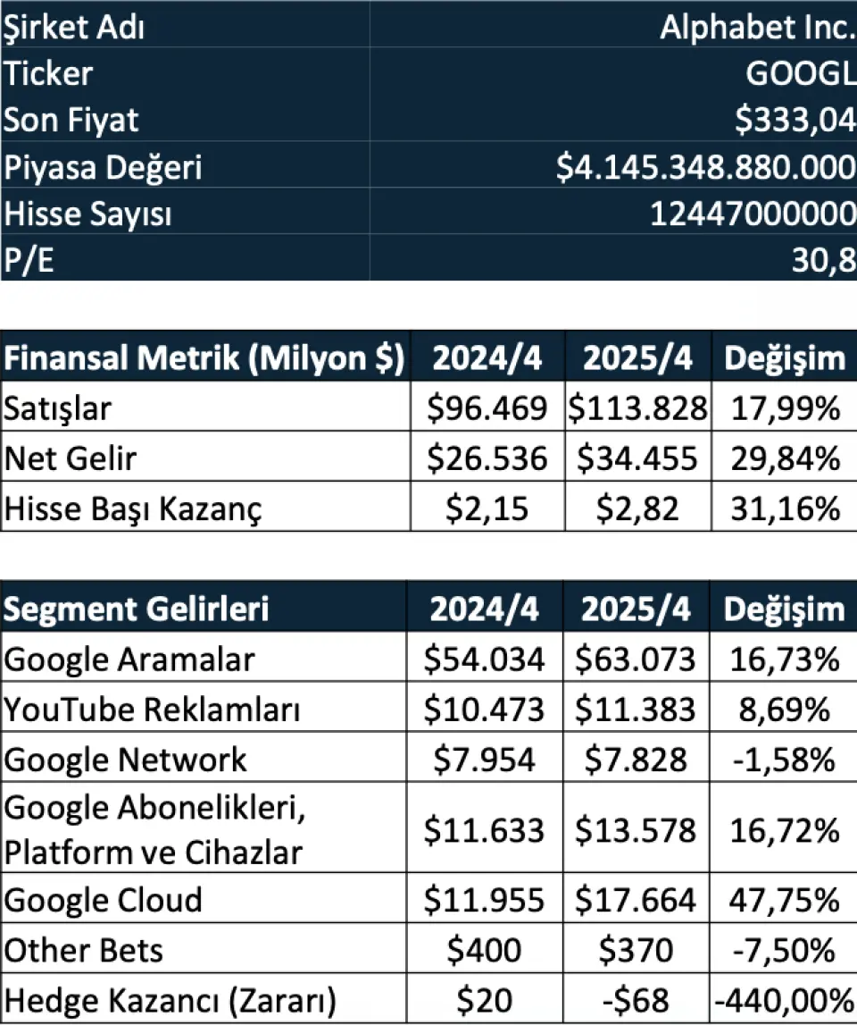 GOOGL 2025/4 Finansal Sonuç Analizi