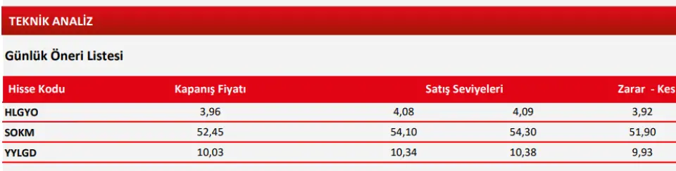 Ziraat Yatırım'dan Günlük Takip Listesi!