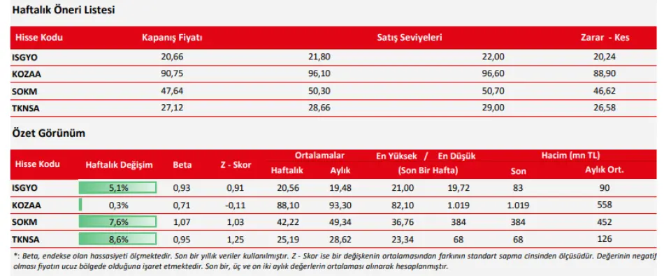 Ziraat Yatırım'dan Haftalık Takip Listesi!