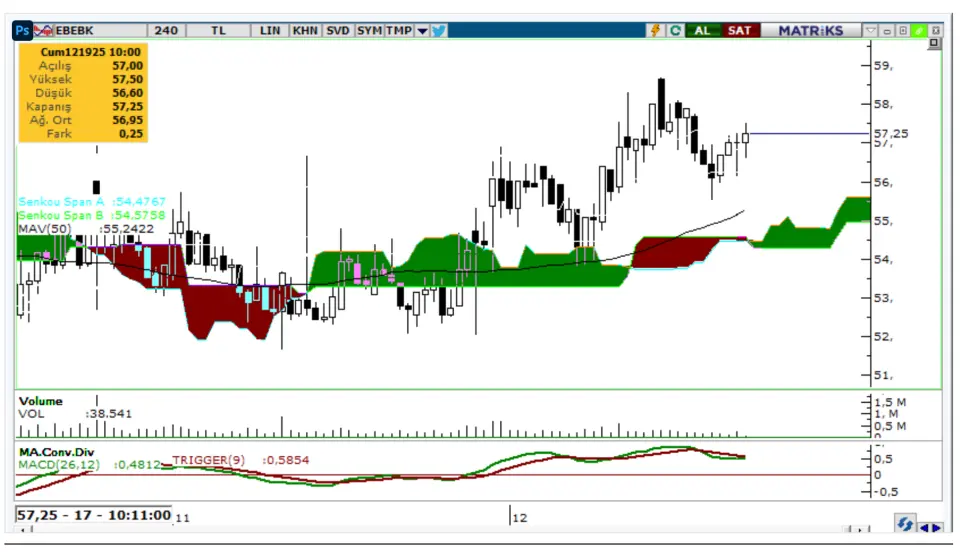 nedeniyle EBEBK hissesinde 57,95TL ve daha sonra 58,65TL seviyelerine doğru yükseliş kaydedilebilir.