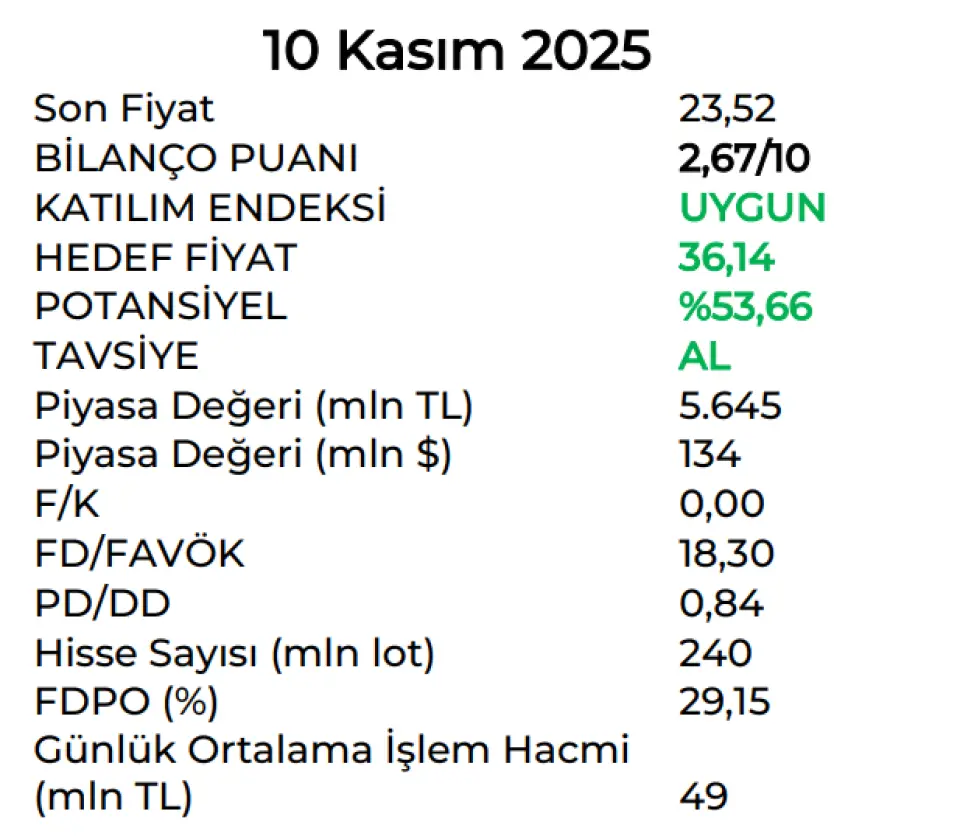 Marbaş Menkul Değerler aracı kurumu 10 Kasım 2025 tarihinde bir rapor paylaştı. Aracı kurum paylaştığı raporda ilgili şirket ile ilgili bilanço yorumunu ve %53'lük hedef fiyatını paylaştı. Rapor şu şekilde oldu: