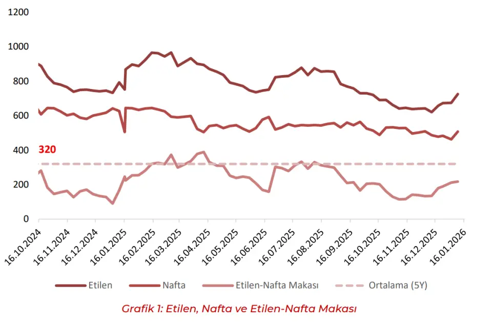 16 Ocak haftası ortalama Etilen-Nafta makasının geçtiğimiz haftaya göre %13,3 artış göstererek 247 $ bandına yükseldiğini görüyoruz. Sektör özelinde belirleyici olan majör haber akışları;