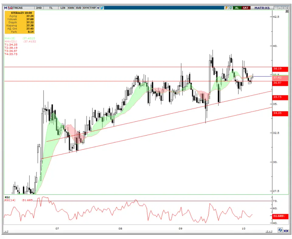 nedeniyle TRCAS hissesinde 37,90TL ve daha sonra 38,20TL seviyelerine doğru yükseliş kaydedilebilir.