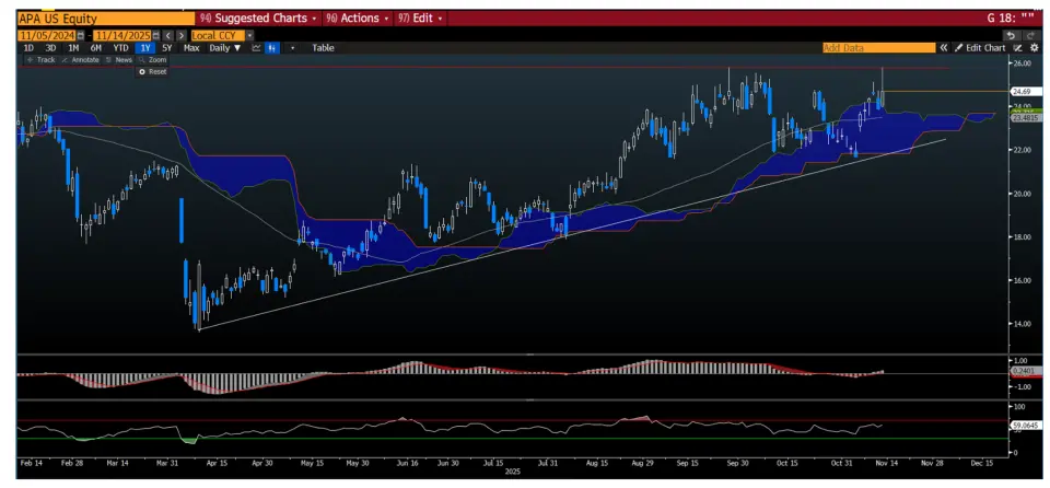 nedeniyle APA hissesinde 24,95$ ve daha sonra 25,30$ seviyelerine doğru yükseliş kaydedilebilir.