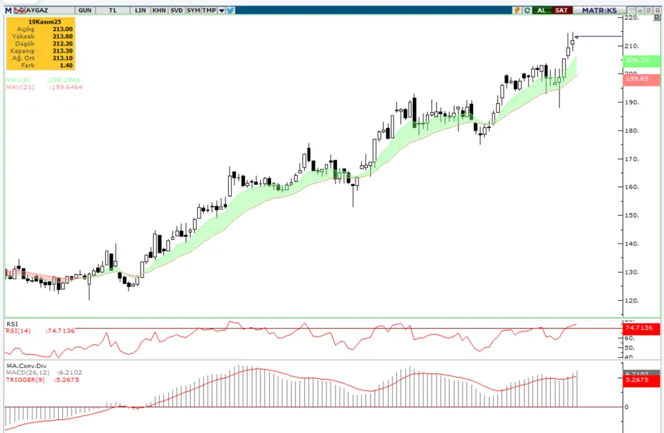 nedeniyle AYGAZ hissesinde 215,50TL ve ardından 217,60TL seviyelerine doğru yükseliş söz konusu olabilir.