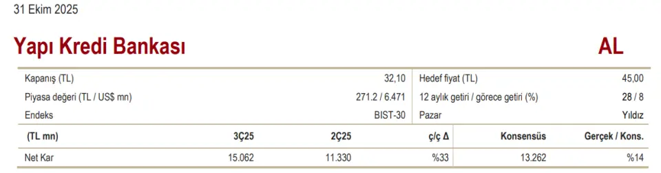 YKBNK 3Ç25 Bilanço Değerlendirmesi