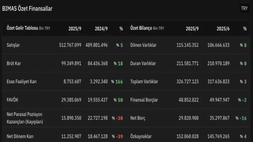 - "Bim Birleşik Mağazaları oldukça başarılı bir çeyrek geçirerek 3Ç24 dönemine göre faaliyet karını %415 oranında artırdı. Brüt kar marjında yaşanan artış önemli olurken. Operasyonel giderlerde yaşanan sınırlı artışı etkin maliyet yönetiminin bir diğer göstergesi olarak yorumluyoruz. File marketlerinde 3Ç25’te 17 yeni mağaza açılışı yapıldı. 3Ç24 döneminde File’nin hasılat içindeki payı %8 seviyesinde gerçekleşirken 3Ç25’de %10 oranında gerçekleşti. Hasılatta yaşanan artış göz önünde bulundurulduğu zaman yeni müşteri segmenti arayışının şirketin hasılatında etkili olduğunu düşünüyoruz. Şirketin dengeli bilançosu ile birlikte serbest nakit akımlarında yaşanan artış pozitif seyrini sürdürüyor. Şirketin sürekli büyümeye yönelik adımları ve yeni müşteri segmenti içerisindeki faaliyetlerin pozitif seyrini olumlu değerlendiriyoruz."