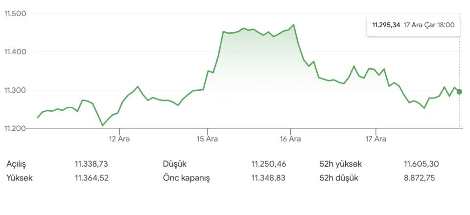BİST 100 Endeksinde Son 5 Günün Grafiği: