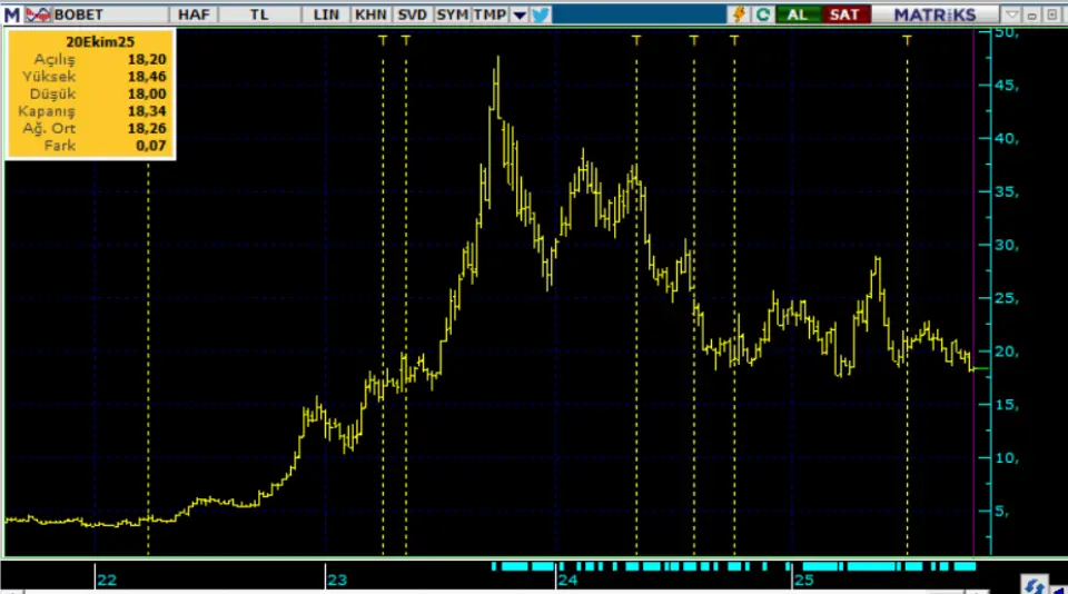 BOBET aylardır düşüşte. Hisse, tam 2 yıl önce 2023 Ekim ayında 47,66 TL zirve fiyattan düşüşe geçmişti. 2 yıldır değer kaybeden hisse, en düşük fiyat olarak 17 TL fiyatı gördü. BOBET bu günlerde 18 TL civarı fiyattan işlem görüyor.