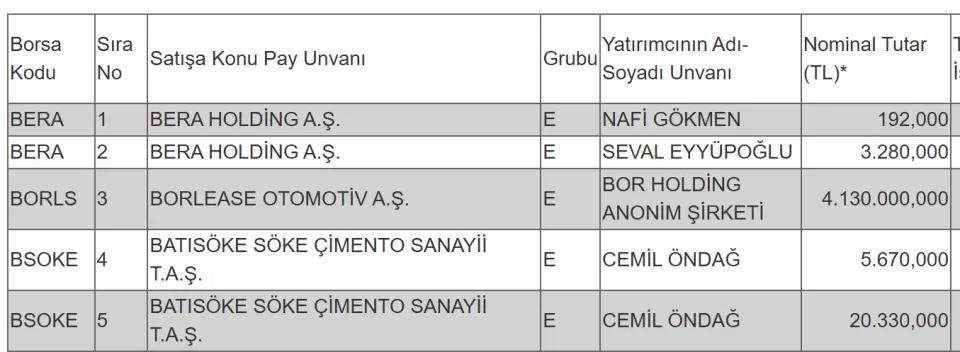 Bu işleme konu olan bir şirket oldu. Bu şirket, BORLEASE OTOMOTİV A.Ş. olurken, çeşitli yatırımcılar E tipi işlem görmeyen paylarının bir miktarını borsada işlem gören tipe dönüştürmek için başvuru yaptı.