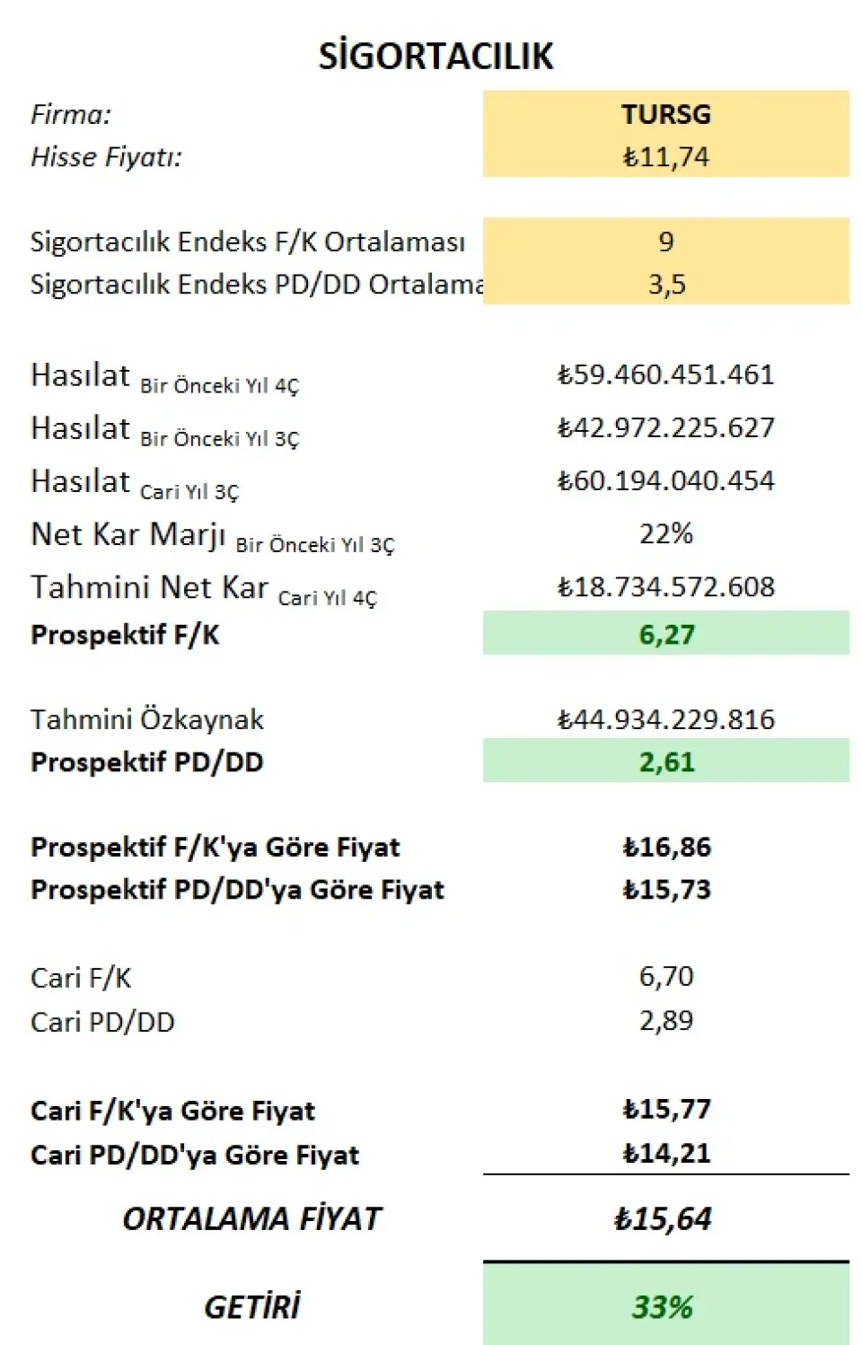 Ülkemizin sigortacılık sektöründe lider olan ve model portföyümüzde yer alan TURSG göreceli değerleme yaklaşımlarına göre hedef fiyatımız olan 11,83 TL’yi 15,64 TL’ye %33 getiri potansiyeli ile güncelliyoruz.